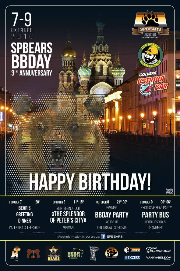 • 21.00 – 00.00 – Evening BBDay Party at Night Club =Golubaya Ustritsa= (The Blue Oyster)/St Petersburg/Lomonosova Street 1 – DJ YAA/Evgeny Bear Show