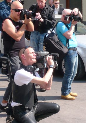 Vor dem BRANDENBURGER TOR stellen sich alle Kandidaten der GERMAN MR. LEATHER WAHL 2013 und die Jury den Fragen und Kameras der Presse.