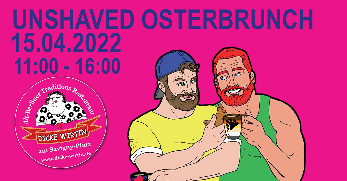 Es geht wieder los! Zum Osterauftakt bietet das Altberliner Lokal "Dicke Wirtin" ein reichhaltiges Buffet in gemütlicher Atmosphäre für alle Bären, Kerle, Freunde und UNSHAVED Besucher.