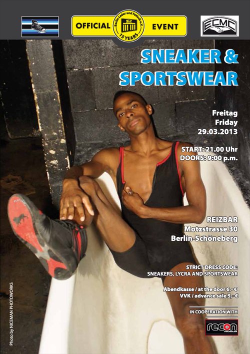 Die Sneaker & Sportswearparty ist ein fester Bestandteil im Osterkalender für die Mitglieder des Berlin Leder und Fetisch e.V. ! Ab 21.00 Uhr gilt in der REIZBAR wieder der Dresscode: Sneaker, Lycra und Sportswear !