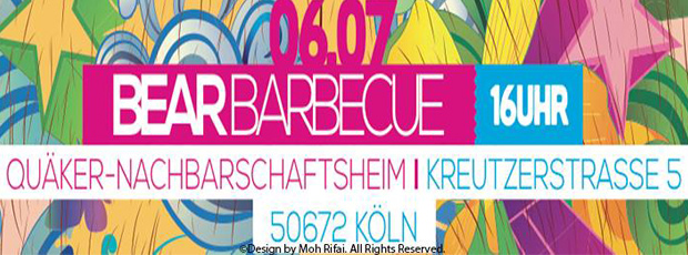 Hallo zusammen, am 06.07.2013 veranstalten wir Bartmänner Köln im Quäker-Nachbarschaftsheim in der Kreutzerstrasse 5, 50672 Köln, unser alljährliches Bear Barbecue. Wie immer seid ihr herzlich dazu eingeladen. Im Eintrittspreis von 16€ sind Essen und Softdrinks enthalten. Für alle Besitzer einer Membearcard ( Mitglieder der Bartmänner Köln ) beträgt der Eintrittspreis nur 8€.